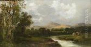 Wooded Mountain Scene With Highland Cattle 11½ X 17½ Inches. Gilt Mount With Broad Gilt Frame 20 X 25 Inches