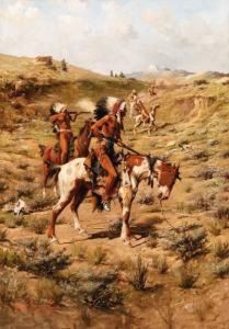 Throughout his career, Paxson continued to paint prolifically, capturing the fading frontier and the final chapters of the Plains Indian Wars. His detailed and vivid paintings contributed to the romanticized image of the West during the late 19th and early 20th centuries. Paxson's work includes other notable pieces such as 'Lewis and Clark at Three Forks' and a series of murals in the Missoula County Courthouse depicting significant events in Montana history.