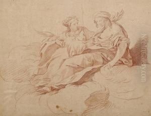 Two Draped Female Figures Seated On A Cloud