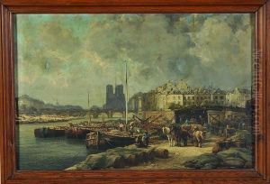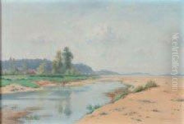 "bord De Loire A Chaumont" Huile Surtoile, Signee En Bas A Droite. 44,5 X 65,5 Cm. Eleve De Julesnoel