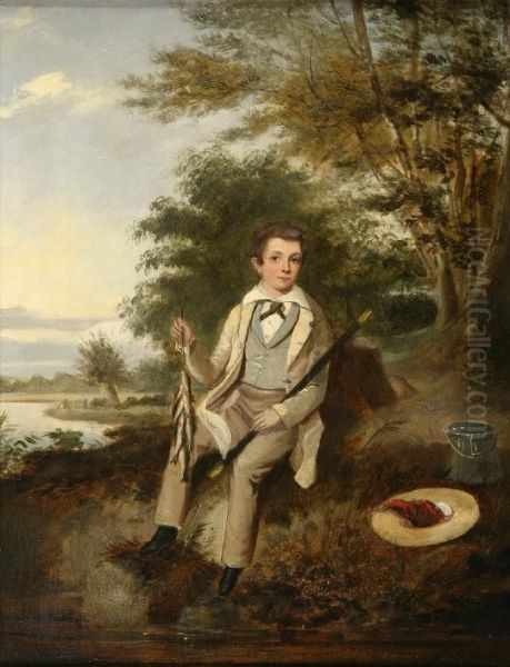 The Young Fisherman, - Young Boy Seated With His Catch On A Riverbank