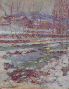 Village Breton Huile Sur Toile, Signee En Bas A Droite