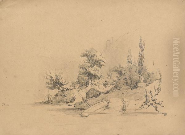 Barque Sur La Rive, Au Dos Etudes De Personnages.