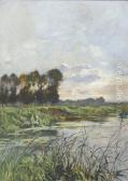 Uferpartie Mit Schilf Und Hohen Baumen