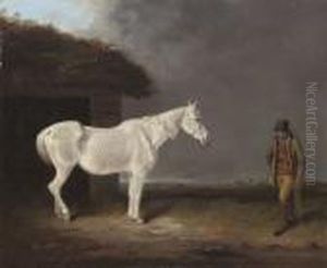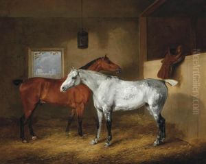 A Dappled Grey And A Chestnut Hunter In A Stable, With Windsor Castle Beyond