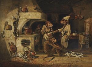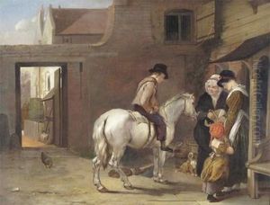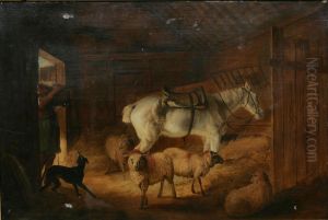 Challenging The Intruder, Dogs And A Donkey In A Stable Interior
