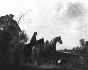 Farmer On Horseback With A Cow And Calf Nearby (+ Landscape With Farmers, Cattle And Sheep Beside A Path; Pair)