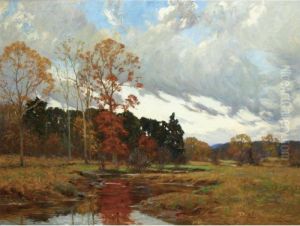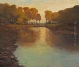 A Wooded River Scene Oil Painting by Edmund Darch Lewis