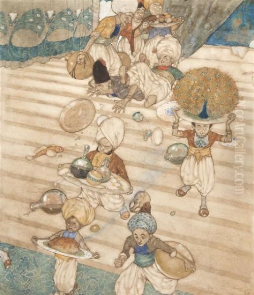 Bring the timeless beauty of Edmund Dulac's Oriental Servants Running And Falling Down Stairs into your home with a handmade oil painting reproduction. Carefully recreated on canvas by skilled artists using traditional techniques, this piece captures the delicate brushwork, subtle light, and vibrant color of the original masterpiece. With museum-level quality and rich texture, it brings elegance and artistic depth to any space. Enjoy free shipping and make this masterpiece a part of your personal collection.