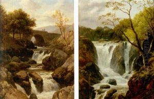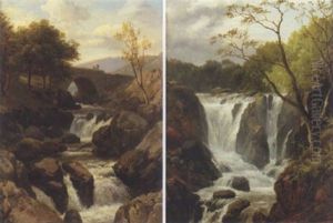 Rocky Scene With Waterfall' And 'waterfall', A Pair