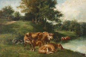Cows By A Stream