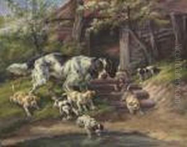 Bring the timeless beauty of Edmund Henry Osthaus's Their First Adventure: A Setter With Her Pups into your home with a handmade oil painting reproduction. Carefully recreated on canvas by skilled artists using traditional techniques, this piece captures the delicate brushwork, subtle light, and vibrant color of the original masterpiece. With museum-level quality and rich texture, it brings elegance and artistic depth to any space. Enjoy free shipping and make this masterpiece a part of your personal collection.
