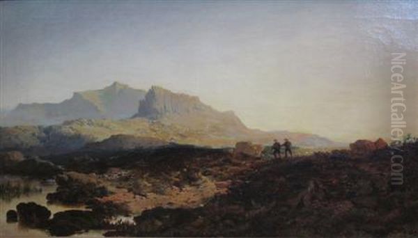 Cader Idris, Moorland Scene With Sportsmen On A Sunlit Path