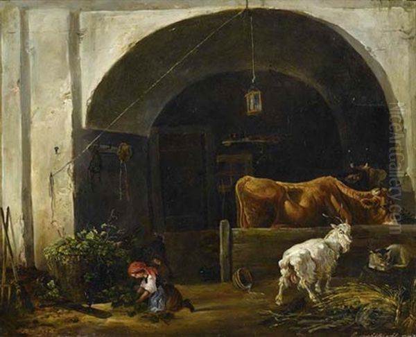 Stallinterieur Mit Magd