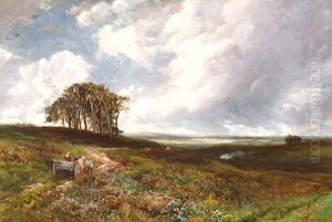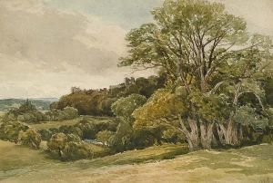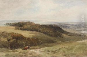 A View On The South Downs With Sheep Resting In The Foreground And A Village In The Distance
