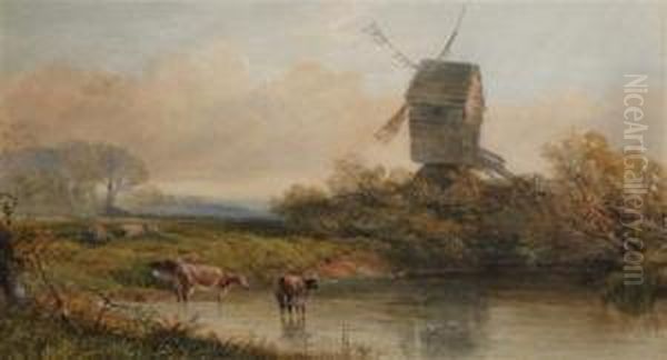 Cattle Watering Before A Windmill