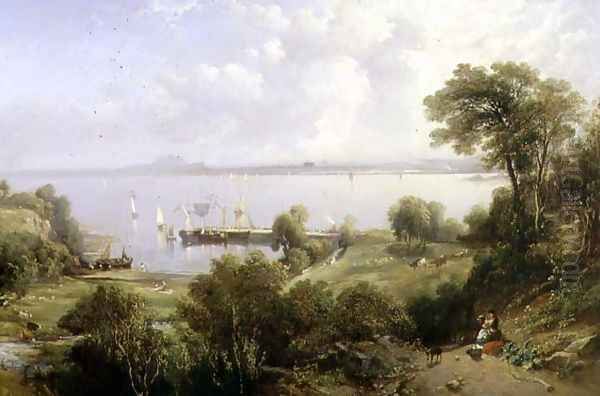 Aberdour Harbour, Edinburgh in the Distance, 1849