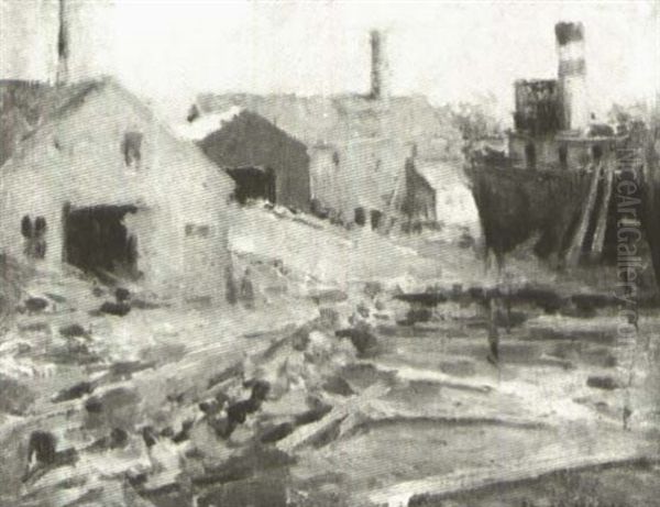 Noank Shipyard Oil Painting by Edmund William Greacen