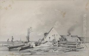 Edouard-bernard . A Peasant Family On The Tramp. Oil/canvas/canvas, Signed
