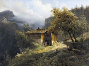 Gebirgslandschaft Mit Chalet Und Figurenstaffage.