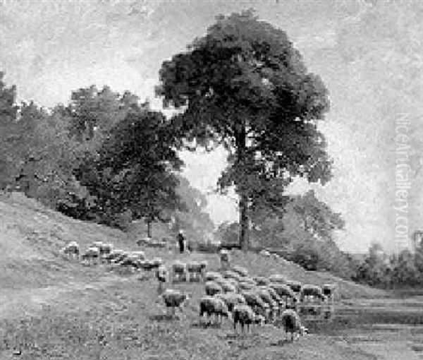 A Shepherdess With Her Flock Oil Painting by Edouard Pail