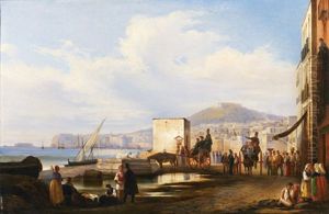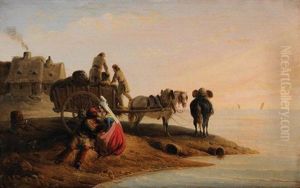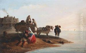An Italian Couple Sitting On The Sea Shore Next To A Horse Carriage