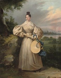 Portrait De La Soeur De Madame P.a. Godart Desmaret Devant Le Chateau De Baccarat
