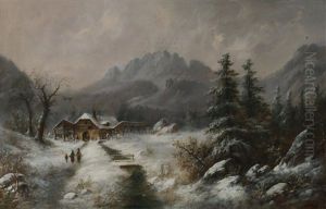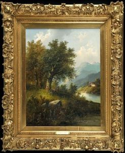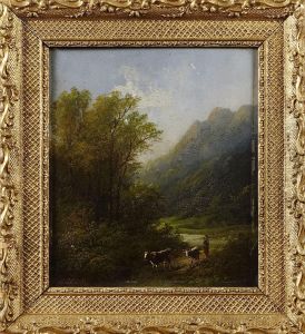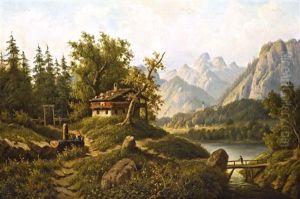 Gebirgslandschaft In Den Alpen Mit Malerischem Gehoft Und Figurenstaffage