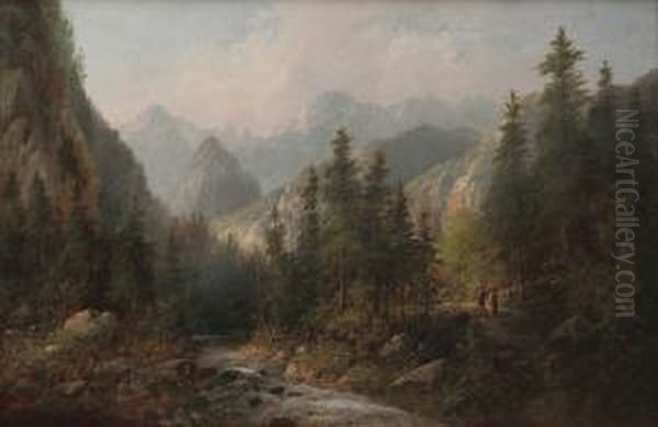 Alpine Stream With Pilgrims