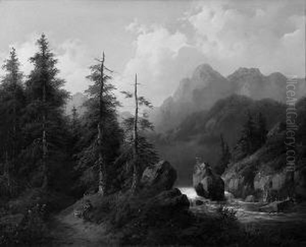 "wanderer Am Gischtenden Gebirgsbach". Sign., Rucks. Betitelt: Partie Bei Salzburg. Ol Auf Lwd. 55 X 69 Cm. Rahmen. Abbildung Seite