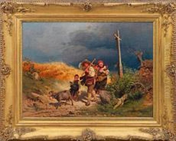 "schwarzwalder Bauernfamilie Vor Einem Gewitterfluchtend"