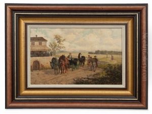 Ein Pferdefuhrwerk Vor Einem Bauernhaus