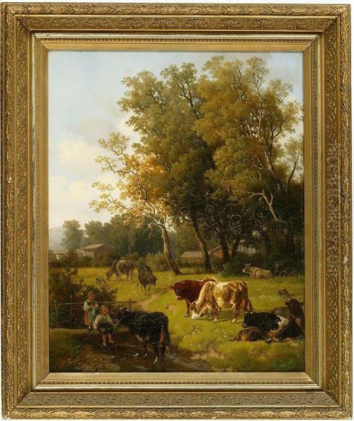 Bring the timeless beauty of Eduard Gotzelmann's Landscape With Cows And Children into your home with a handmade oil painting reproduction. Carefully recreated on canvas by skilled artists using traditional techniques, this piece captures the delicate brushwork, subtle light, and vibrant color of the original masterpiece. With museum-level quality and rich texture, it brings elegance and artistic depth to any space. Enjoy free shipping and make this masterpiece a part of your personal collection.