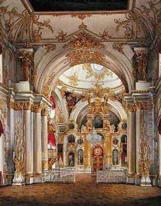 In the 1830s, Hau traveled to Europe, spending time in Italy and Germany, where he was influenced by the works of other European artists. This exposure to different styles and techniques further enriched his own painting style. Upon his return to the Russian Empire, he settled in Saint Petersburg and became a member of the Academy of Arts. He was appointed as a court painter, which allowed him to gain access to the lavish interiors of the Russian palaces and the nobility, becoming a sought-after artist for his realistic portrayals and intricate attention to fabrics and materials.