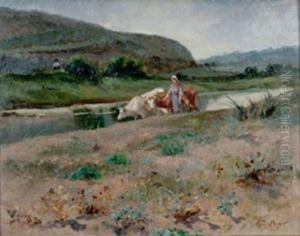 Vacher Et Ses Betes Au Bord De L'eau