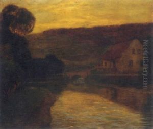 A River Landscape At Sunset