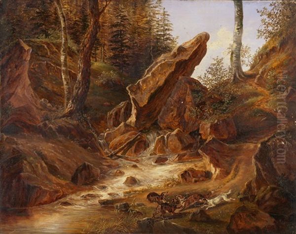 Bring the timeless beauty of Eduard Rahn-Hirzel's Wildbach Mit Jagdmeute into your home with a handmade oil painting reproduction. Carefully recreated on canvas by skilled artists using traditional techniques, this piece captures the delicate brushwork, subtle light, and vibrant color of the original masterpiece. With museum-level quality and rich texture, it brings elegance and artistic depth to any space. Enjoy free shipping and make this masterpiece a part of your personal collection.
