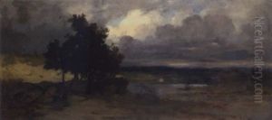 Gewitterstimmung Uber Einer Hollandischen Landschaft Mit Einer Windmuhle