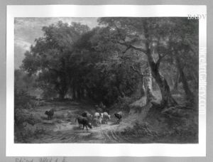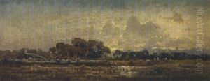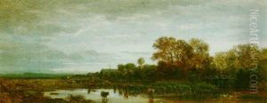 Landschaft Mit Heuernte Und Vieh Am Wasser