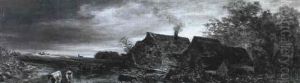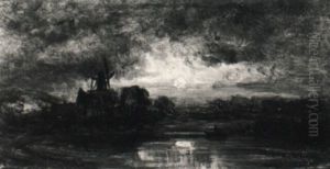 Mondscheinlandschaft Mit Einer Windmuhle