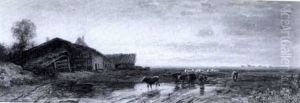 Hirte Mit Kuhen An Der Tranke
