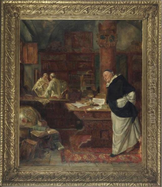 Smiling Friar In A Library Interior