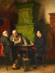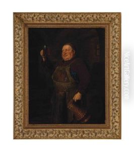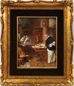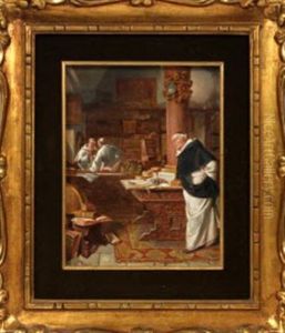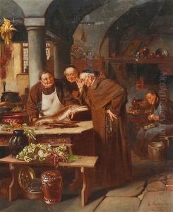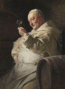 In A Monasterial Tavern. A Genre Scene Picturing A Group Of Three Drinking And Smoking Monks Behind A Table With Food. One Of Many Varieties Of Author's Classical Theme