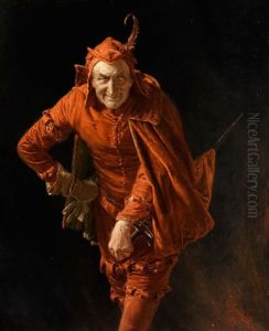Falstaff Am Tisch Mit Weinkrug Und Zinnbecher