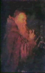 Monch Bei Der Brotzeit Am Tisch Im Kellergewolbe Sitzend