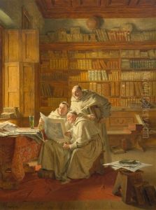 Monche In Der Klosterbibliothek.