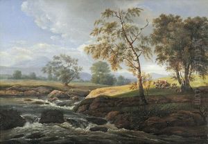 Felsige Landschaft Mit Hirte Und Vieh