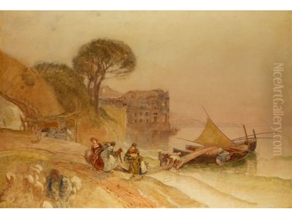 Pescatori A Riva Con Palazzo Donn Anna Sullo Sfondo
