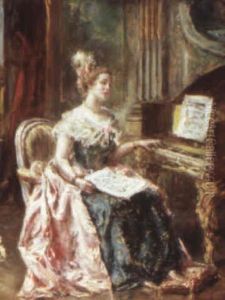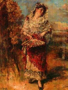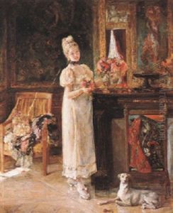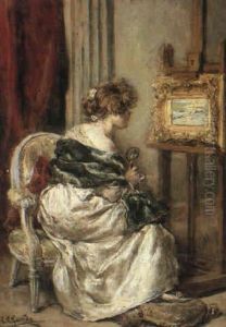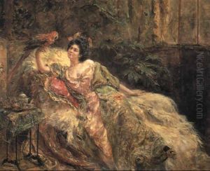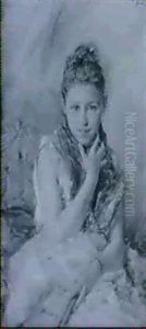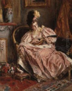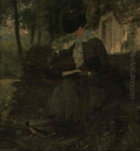 Portrait Of A Lady, Seated In A Garden Holding A Bunch Of Flowers