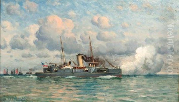 A Chilean Gunboat Firing A Salute